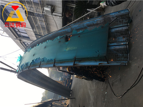 舊屋面拆除工作于2016年12月15日正式啟動(dòng),杰達(dá)鋼構(gòu)團(tuán)隊(duì)分階段進(jìn)行施工,先拆除兩側(cè)過(guò)道雨篷及山墻,后用25T吊車(chē)與氣割配合完成舊拱形屋面的整體拆除。