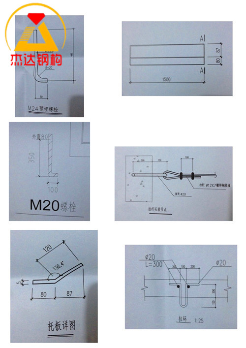 在節(jié)點設(shè)計方面,每一個連接位置都需結(jié)合整體受力分析,采用等距布置方式,確保力傳導(dǎo)平衡。節(jié)點詳圖可以直觀體現(xiàn)預(yù)埋件在鋼結(jié)構(gòu)中的嵌入深度與布置方式。
