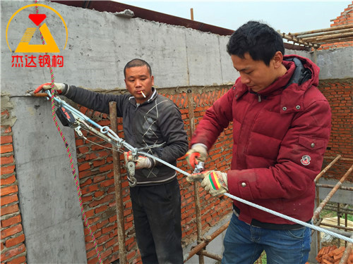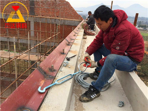 拱形屋頂的磚墻上口以及全鋼結構的鋼柱頂部通常會安裝拉鋼絲繩,以增強結構的受力能力。鋼絲繩一般選用M12M14規格,既能滿足承載需求,也保證了耐久性。