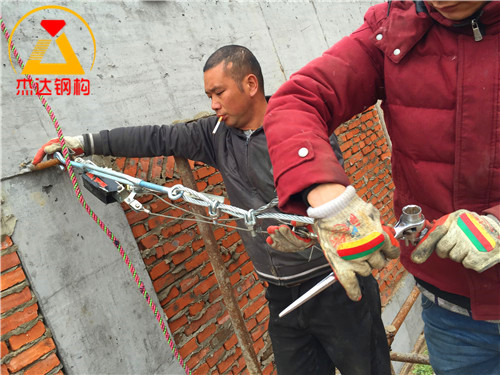 圖中展示了鋼絲繩拉緊裝置的現場應用,反映出施工環節的技術細節和操作規范,有助于提升整體工程質量。