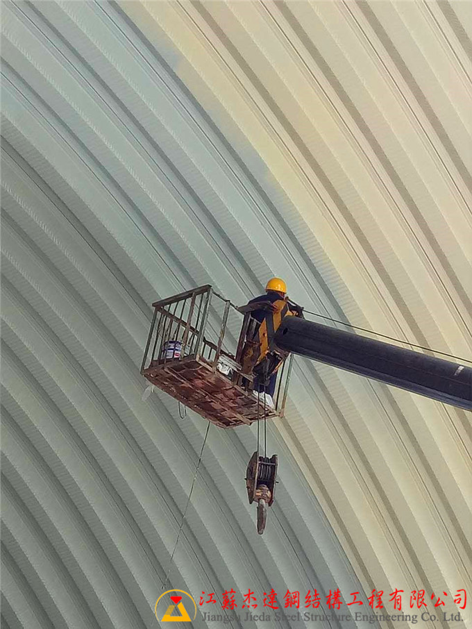 部分業主,尤其是化工業主,通常會要求對拱形屋頂的背面進行防腐油漆噴涂,以保護鋼結構免受腐蝕影響。一般情況下,防腐油漆由業主提供,施工方則以清包工的方式負責噴涂工作,確保施工質量符合使用需求。