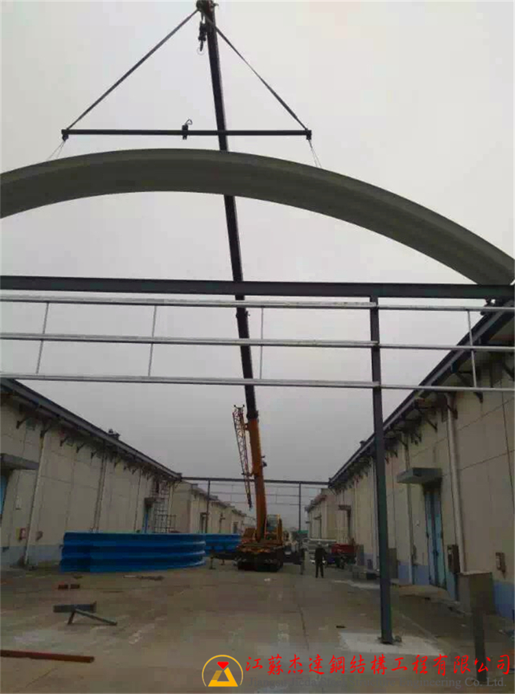 工程名稱:江蘇鹽城建湖拱形屋頂倉間罩棚制作安裝工程