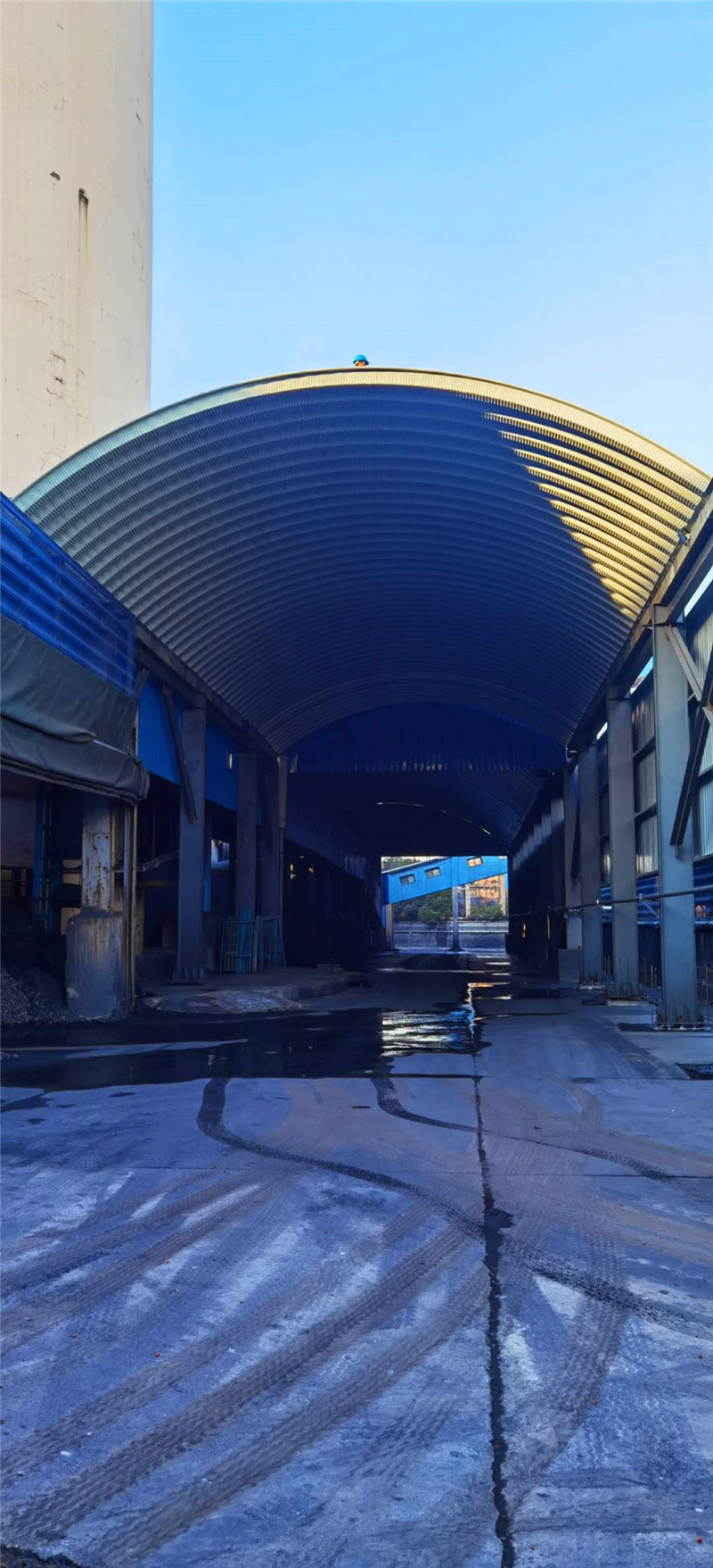 回顧兩年前完成的28米跨度拱形屋頂工程,拱高約6米,加上檐口高度,提供了寬敞的內部空間。這種結構形式為煤棚下的裝載作業提供了便利,提升了場地使用效率。