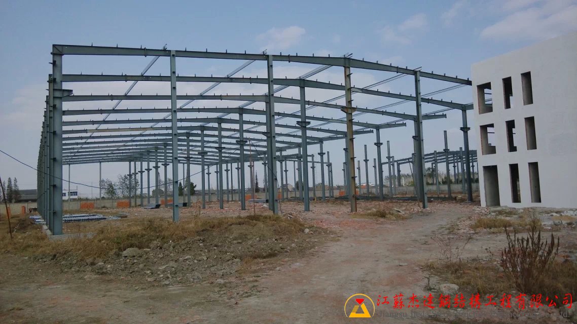 本工程為全鋼結(jié)構(gòu)五連跨車間,采用多跨鋼架設(shè)計(jì),確保空間利用最大化。主體鋼架部分由江蘇杰達(dá)鋼結(jié)構(gòu)工程有限公司負(fù)責(zé)鋼梁的加工與制作,保證結(jié)構(gòu)的質(zhì)量和施工進(jìn)度。